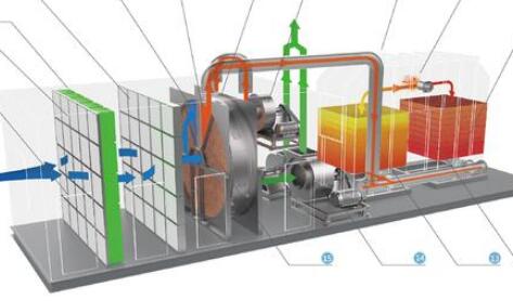 VOCs被濃縮成原來5~20倍的高濃度氣體。冷卻區通過低溫風將轉輪溫度冷卻下來進行下一個階段的廢氣吸附。